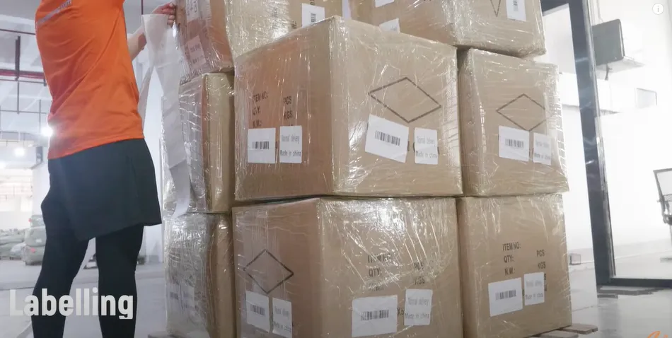The parcels in the baskets will then be placed in giant transport cartons. After that, we will put shipping labels that include the information of every parcel onto the giant carton. It will make sure that logistic providers won’t lose the boxes and have them safely passed every transit.